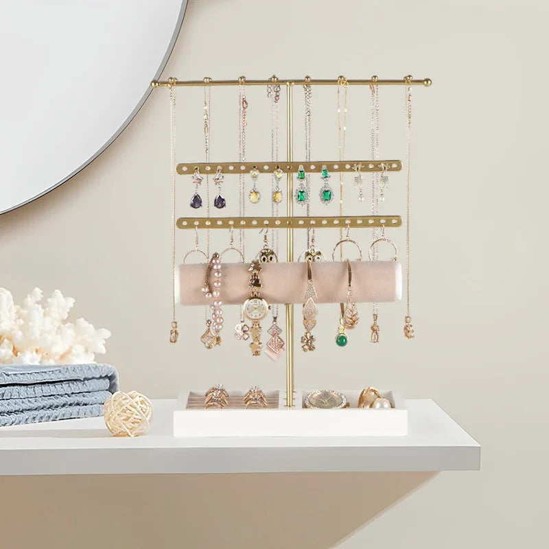 • Organizzazione completa: ganci per collane/bracciali + vassoio per anelli e orecchini