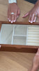 La scatola è composta da 3 livelli modulari: anelli, orecchini, bracciali, collane e persino orologi, ognuno dei quali trova il suo spazio dedicato.
